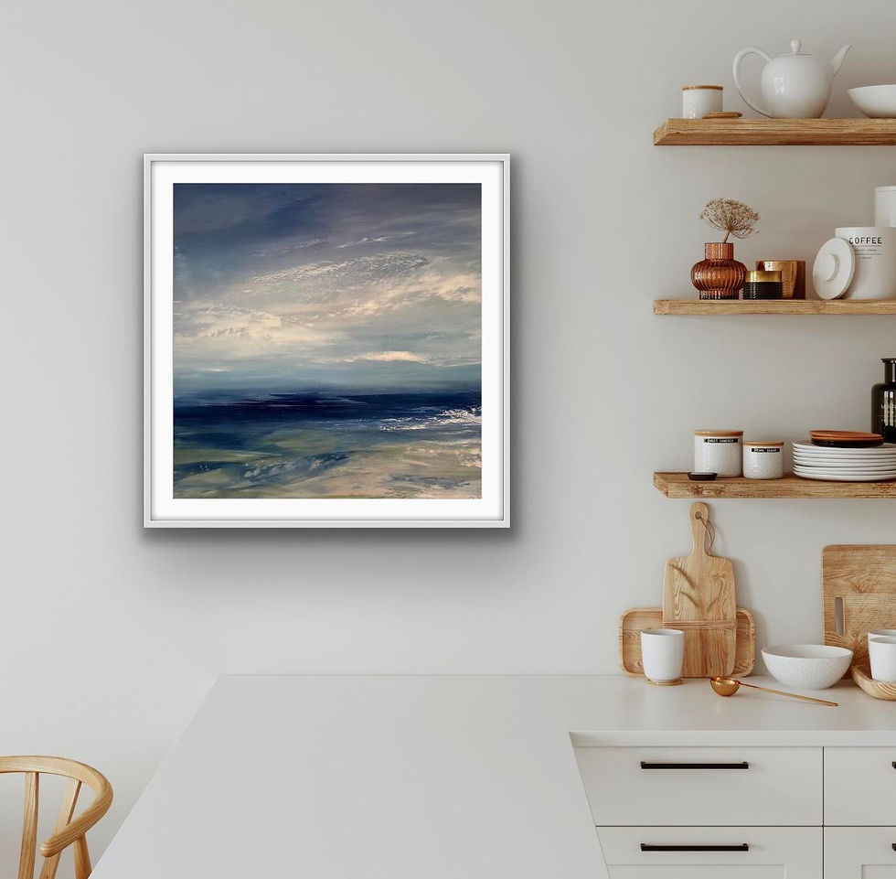 It’s as if one can feel just a hint of a breeze or smell the salt in the air. The gestural mark making is paradoxically both random yet deliberate. Through splattering, scraping and smudging with hands, brush and palette knife Tess has developed a playful explorative technique that reflects a mindful immersion in a time and place.